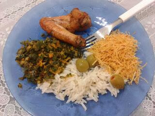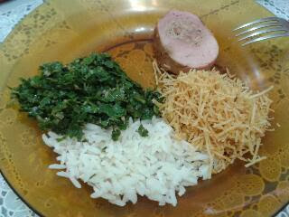 Depois de um final de semana bem engordativo, onde teve batata frita com calabresa, carne seca com aipim e feijoada, uma saladinha verde e legumes cozidos.