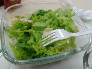 Também levei uma saladinha verde mas não sei o que houve, o fato é que as folhas estavam amareladas. Horrível! Acabei não comendo a salada. Fiquei chateada!